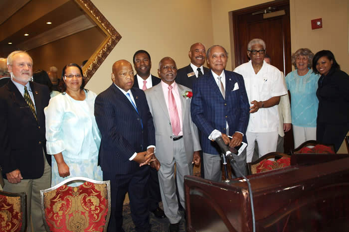 Over 170 persons gathered to hear United States Representative Congressman John Lewis and Dr. Kathryn Fentress, at the Casa Monica Hotel to commemorate the 46th Anniversary of the Signing of the Landmark Civil Rights Act of 1964 as well as to honor the heroes of the St. Augustine Movement. Dr. Kathryn Fentress told of a time when she first heard John Lewis speak. This was many years ago to a group of Christian volunteers. It was that speech over 50 years ago that inspired her activism. David Nolan, local historian also told of a time when he saw the Congressman with a bandaged head, shortly after he was beaten by segregationists in the march across the Edmund Pettus Bridge (Selma, AL). Lewis was speaking to him and other college